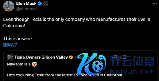 把特斯拉排斥在外可能会让纽森和马斯克之间的关系愈加焦炙。马斯克在外交平台X上复兴称:特斯拉是惟逐个家在加州坐蓐电动汽车的公司,这太任性了。