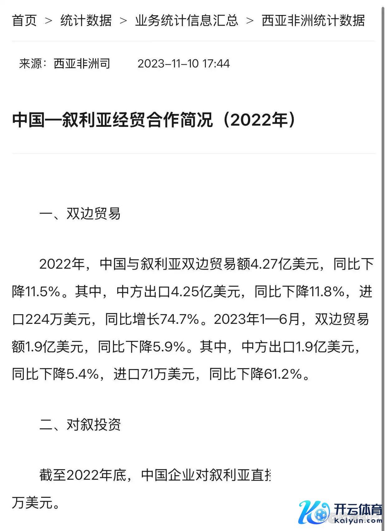 更为引东说念主存眷的是,东方大国与叙利亚的商业额也呈现出不合称的款式。2023年,东方大国对叙利亚的出口为1.9亿好意思元,但入口却仅为71万好意思元。这一方面突显了叙利亚商场的萎缩,另一方面也标明了叙利亚看成商业伙伴的诱骗力远远过期于左近国度。
