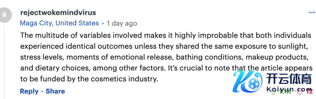 总之,通过对这对双胞胎姐妹的对比,照旧不错看到肉毒杆菌毒素的妙处的。但是吧,网友们对这个盘考论断却执不同主意。触及的稠密变量使得两个东说念主的搁置变得不太真正,除非她们在阳光领略、压力水平、厚谊开释时刻、沐浴条款、化妆品使用和饮食采用等方面有换取的履历。值得提防的是,本文似乎得回了化妆品行业的资助。