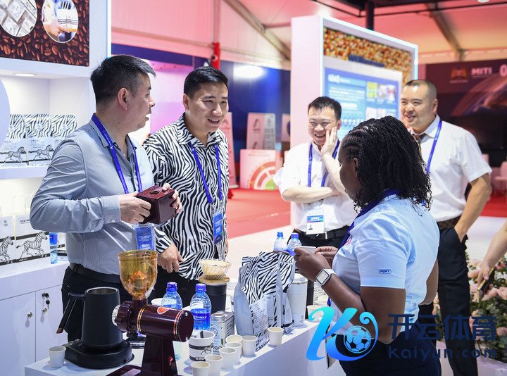 2024年5月9日,参展商在肯尼亚齐门内罗毕举办的中非经贸展览会走进非洲巡展上倾销咖啡家具。新华社记者 李亚辉 摄