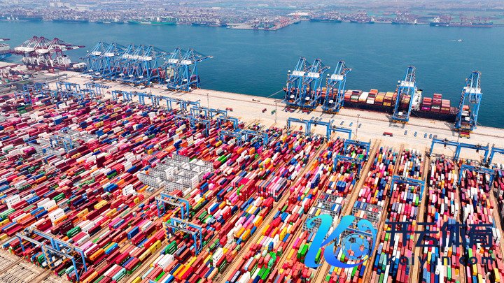 汽船在山东口岸青岛港全自动化集装箱船埠靠岸功课(2024年7月3日摄,无东说念主机相片)。新华社记者 郭绪雷 摄