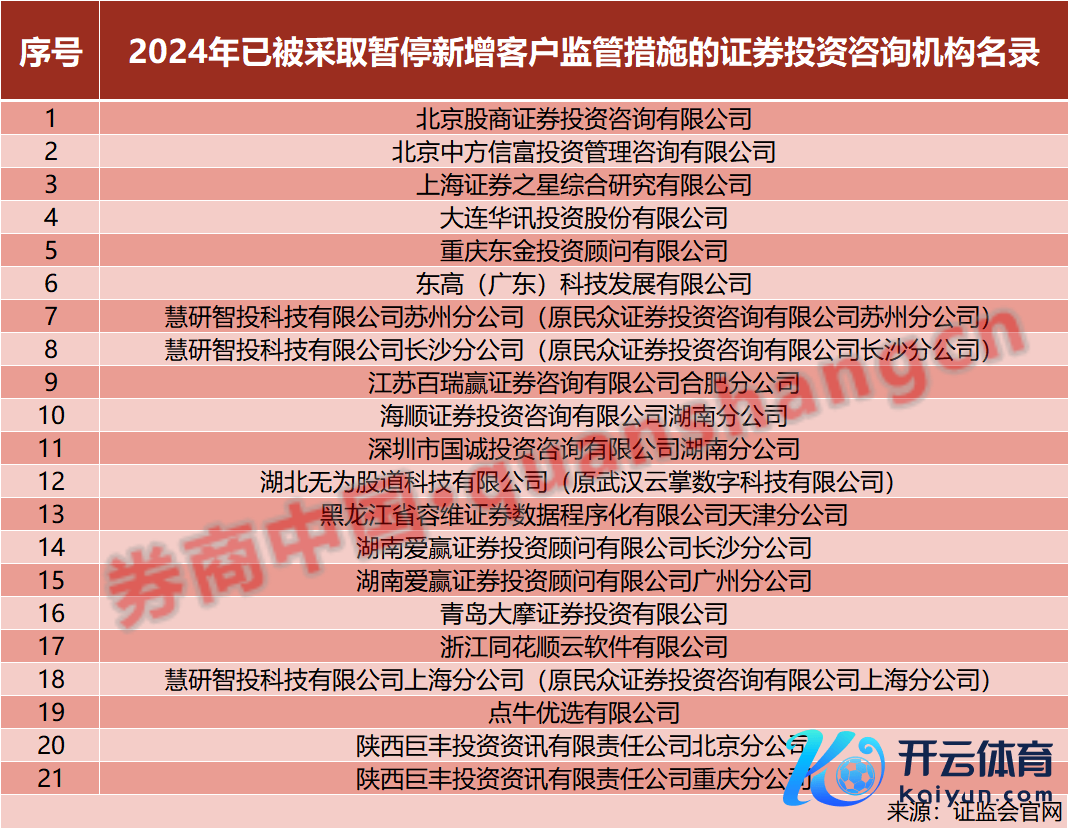 券商中国记者顾惜到,连年来,除了证券公司、司帐事务所和律所等中介机构通常收到监管罚单,通常属于证监会颁发执照的证券投资量度机构(俗称第三方投顾机构)也受到严监管。据券商中国记者不全王人统计,本年以来已有9家第三方投顾机构或分公司收到各地证监局罚单,被罚金、责令改正以及暂停新增客户设施。其中,暂停新增客户属于较为严厉处罚设施,而2024年以来就有21家第三方投顾或分公司被监管暂停新增客户。