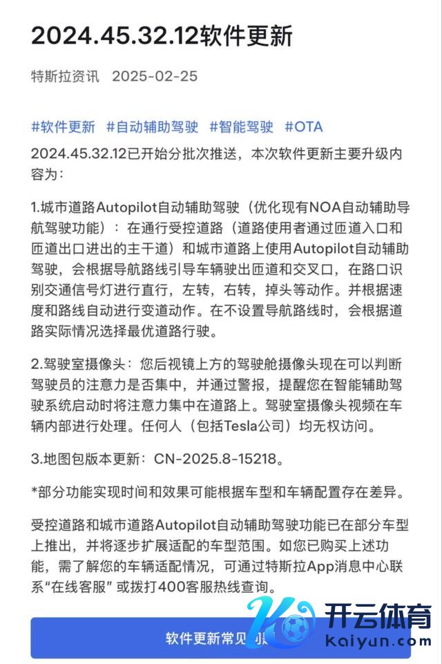 2月25日,特斯拉中国微信小表率走漏,特斯拉已驱动分批次为客户推送2024.45.32.12软件更新。