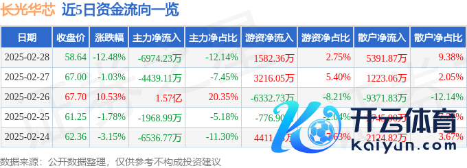 本站音讯,摈弃2025年2月28日收盘九游体育娱乐网,长光华芯(688048)报收于58.64元,下落12.48%,换手率9.41%,成交量9.37万手,成交额5.75亿元。