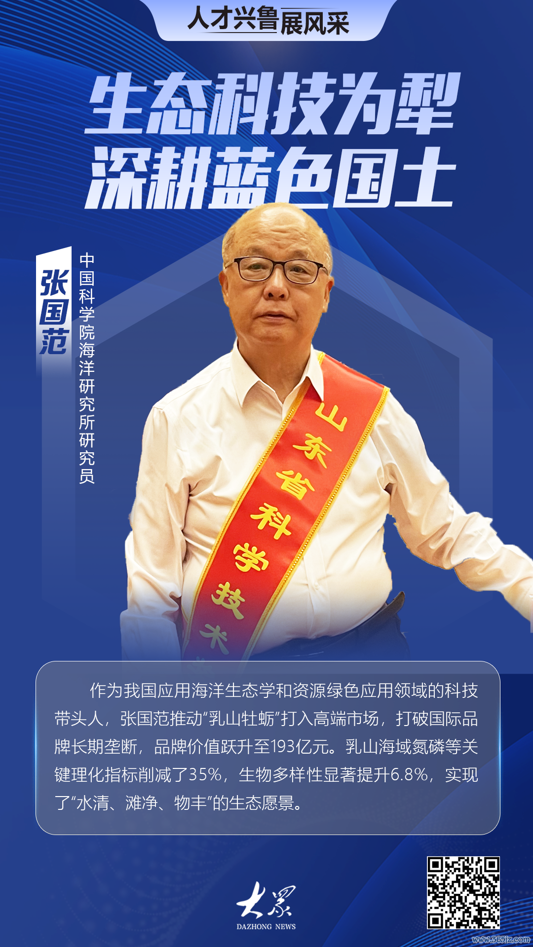 动作我国诈欺海洋生态学和资源绿色诈欺畛域的科技带头东说念主,张国范坚抓“生态与经济共赢”形态,数十年如一日深耕海洋生态牧场,激动“乳山牡蛎”打入高端商场,品牌价值跃升至193亿元,年产值冲破50亿元。乳山海域氮磷等要情理化主义下落了35%,主要水质理化主义恒久结识在国度I类水质活动,生物各种性权臣晋升6.8%,杀青了“水清、滩净、物丰”的生态愿景。如今,张国范的贝类生态产业形态,已奉行至世界海域。