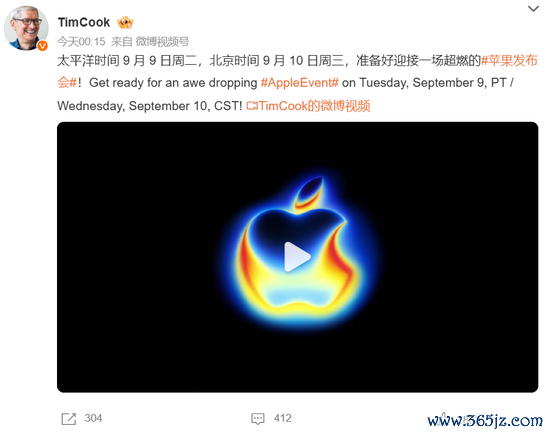 27日凌晨,苹果CEO库克在微博发文:准备好迎接一场超燃的苹果发布会。
