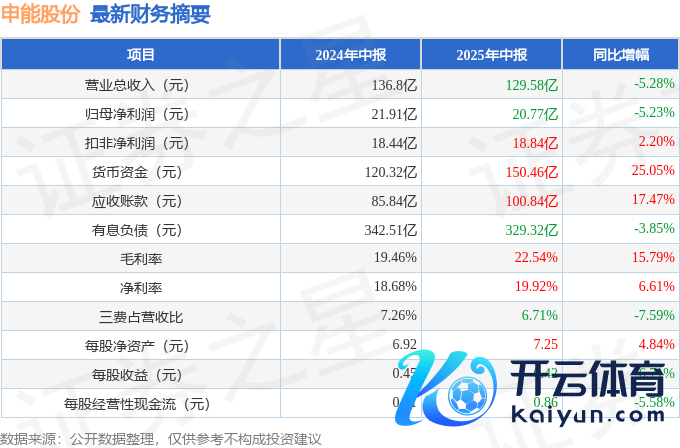 据证券之星公开数据整理,近期申能股份(600642)发布2025年中报。终了本敷陈期末,公司生意总收入129.58亿元,同比下降5.28%,归母净利润20.77亿元,同比下降5.23%。按单季度数据看,第二季度生意总收入56.2亿元,同比上升0.21%,第二季度归母净利润10.66亿元,同比上升3.29%。本敷陈期申能股份盈利智力上升,毛利率同比增幅15.79%九游体育官网登录入口,净利率同比增幅6.61%。